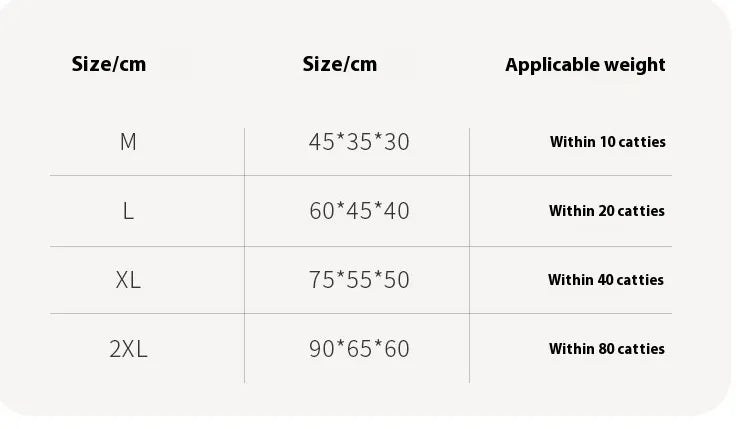 Specifications: pets with M size-recommend less than 10 Jin, pets with L size-recommend less than 20 Jin, pets with XL size-recommend less than 40 Jin, pets with size XXL-recommend less than 80 Jin